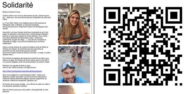 On June 17, 2023, Céline vanished without a trace in the rainforest of Philosopher Falls, in Waratah, Tasmania (Australia). In the very first days, significant resources were deployed: divers, drones, helicopters… But difficult weather conditions hindered the search.